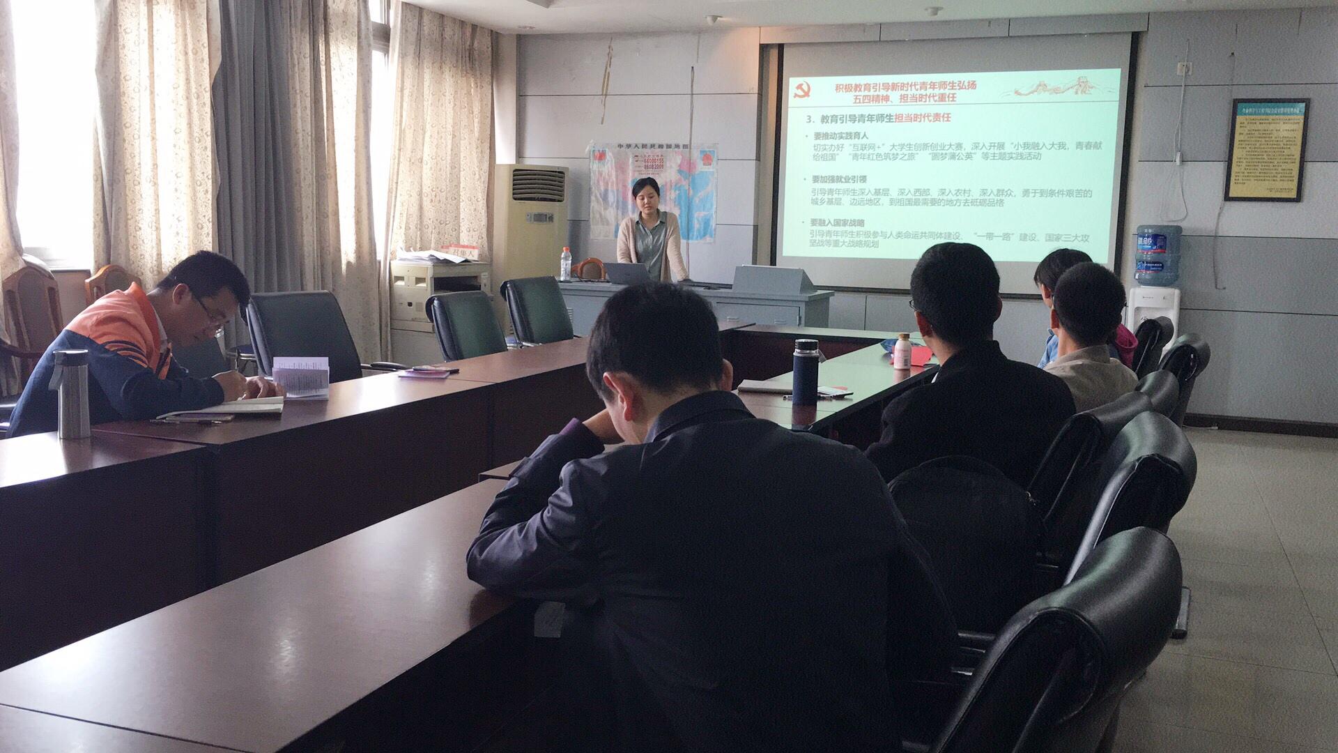 2019-05-145月9日下午,js3333线路检测中心化学化工系党支部在犀浦校区X1102召开党支部党日活动。此会议的主题是:学习贯彻习近平总书记在纪念五四运动100周年...