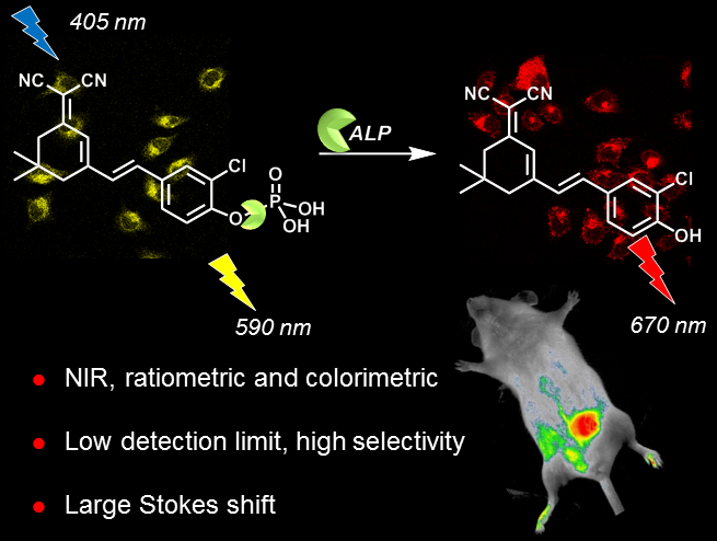 近日,化学传感领域权威期刊《Sensors and Actuators B:Chemical》 (影响因子:7.46)上发表了js33333金沙线路检测王雅雯教授课题组的研究成果“Ratiometric detection and bioimaging of endogenous alkaline phosphatase by a NIR fluorescence probe”(中文译名:“用近红外荧光探针对内源性碱性磷酸酶进行比率检测和生物成像”)。该论文的第一作者为js3333线路检测中心的硕士研究生冯雨安,王雅雯教授、彭羽教授和肖检助理研究员为文章的共同通讯作者。该项工作得到国家自然科学基金((No. 22071200),教育部中央高校基本科研业务费专项(2682021ZTPY011)的资助。