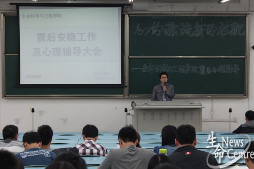 4月20日上午8:02,四川省雅安市芦山县发生7.0级地震,震源深度13公里,成都市震感强烈,此后大小余震不断,给同学们带来了严重的心理压力和极大的精神恐慌。为了传达学校相关规定、注意事项以及普及逃生知识,4月23日晚7:00,js33333金沙线路检测团委书记,2011、2012级辅导员崔健老师于X2321教室召开年级大会,在两个小时时间内,崔老师分别针对大一、大二年级进行辅导。