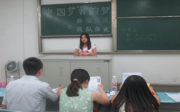 5月27日晚,由js33333金沙线路检测党委主办,生工第一、第二党支部承办的“中国梦”我的梦--经验交流及模拟面试活动于X2326成功举行。成功保研的邱槿怡、张敬文和已顺利找到工作的周杨、余亚红四位毕业生为生物工程专业的同学们分享了自己的经验并担任本次模拟面试活动的评委。