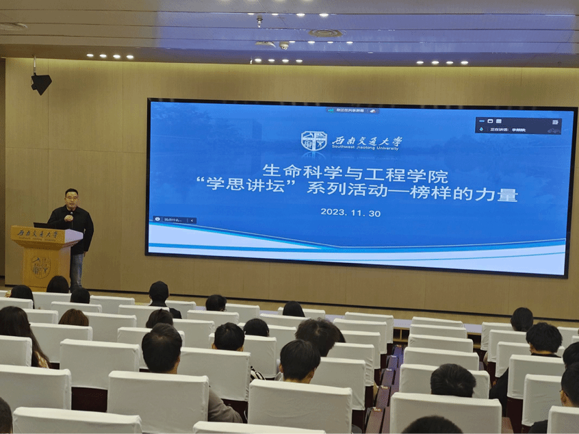 在接下来的经验分享环节中,2023年本科生竢实扬华奖章获得者唐琳、2023级研究生竢实扬华奖章获得者李郅佳、2020级国奖获得者颜超越、2020级省级优秀毕业生邹民军,本科生物工程党支部庄智尧等5为优秀学生代表向同学们分享了他们关于科研竞赛、学习方法、学生工作等方面的经验,并与同学们交流互动,解答他们的疑问。