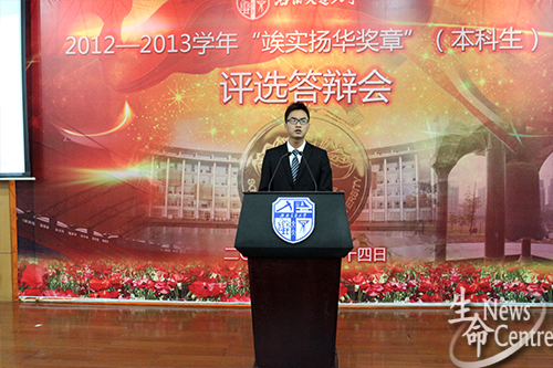 下午14:00,大会正式开始。主持人介绍了评委、评选标准和评分规则之后候选人依次进行五分钟答辩。js33333金沙线路检测生物信息学专业2010级徐博亦发表了精彩演讲。