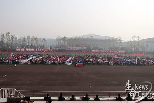 “生之活力,生生不息”js33333金沙线路检测学子正昂首阔步而来。伴着主持人解说词,js3333线路检测中心方阵向主席台走来。他们整齐的步伐,从容的微笑让js3333线路检测中心的啦啦队员不由精神为之振奋。紧接着,同学们用分别用红色和绿色的纸板不断变换队形,生动的地演绎了一颗种子从萌发到成长再到绽放的过程,也诠释了生命的含义。看台上呐喊助威的人儿们高呼“js3333线路检测中心,活力无限,生生不息,博厚悠远”,一阵阵低沉而洪亮的鼓声伴奏。